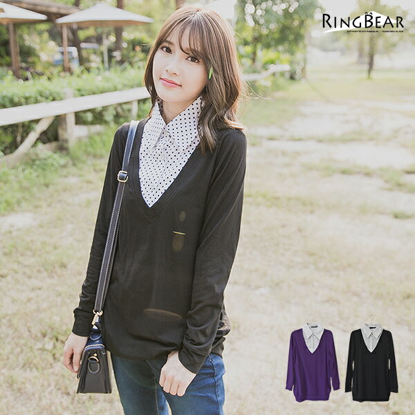 None, 復古簡約--俏麗摩登滿版圓點V領假兩件長上衣(黑.紫2L-5L)-X173眼圈熊中大尺碼。在樂天市場的眼圈熊S-7L大小尺碼衣褲專賣有最棒的商品,是您省錢的最佳選擇。